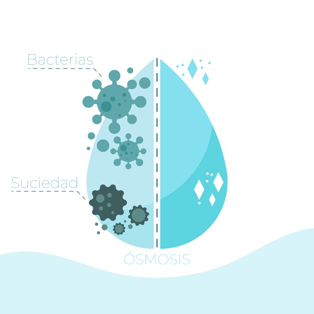 El agua es forzada a pasar a través de una membrana que solo permite el paso de las moléculas de agua, bloqueando las partículas más grandes, como sales, minerales y otros contaminantes.